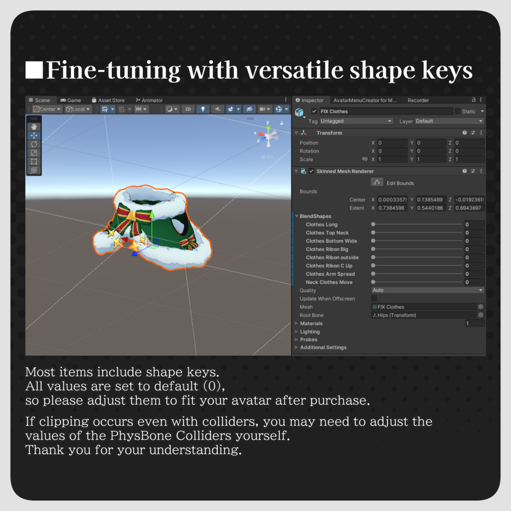 If you are unsure how to attach the outfit to your avatar, please refer to the tutorials on the Modular Avatar website.
